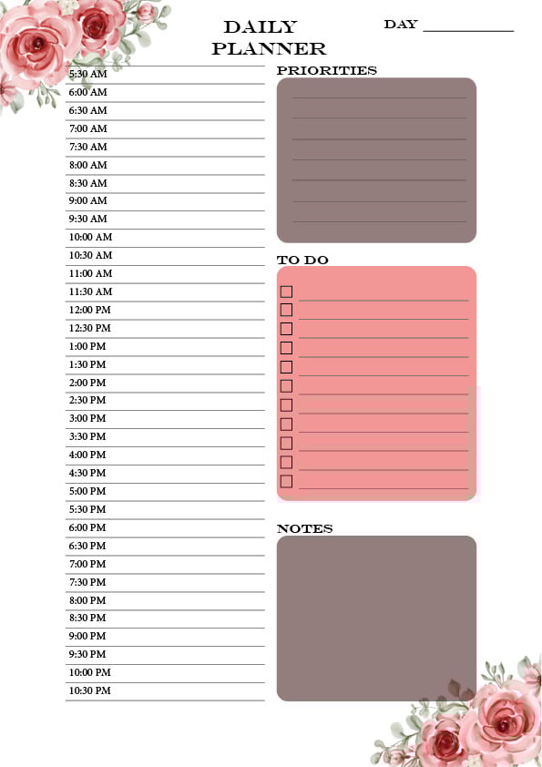 Red Daily Planner, Red Day Planner, Red Work Planner, Red Hourly Planner, Instant Download, A4/A5/Letter/Medium Size